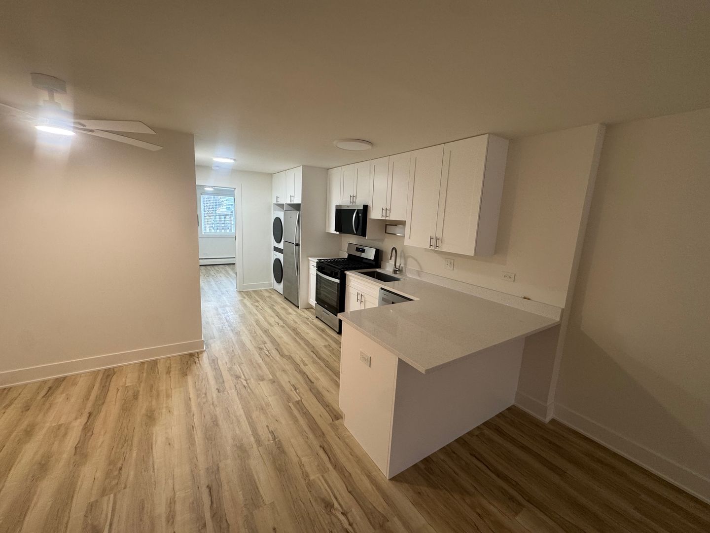 Chestnut Court Apartments in Glenview, IL offers a newly renovated one-bedroom, one-bathroom apartment on the first floor. Interiors feature LVT flooring, ceiling fans, stainless steel appliances, and an in-unit washer and dryer for everyday convenience. Residents have access to off-street parking, free storage, and 24-hour emergency maintenance support. The building’s updates and practical amenities provide a comfortable, low-maintenance living option in a convenient Glenview location.