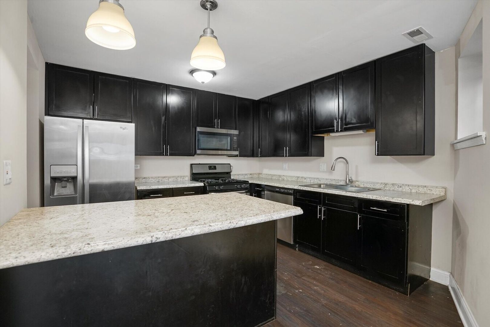 Renovated 8-unit building in the heart of Bronzeville! This spacious 3-bedroom, 2-bathroom home offers true condo-quality living with high-end finishes throughout. Upon entry, you're welcomed by a bright, oversized living room featuring gorgeous hardwood flooring that runs throughout the unit. The modern kitchen includes stainless steel appliances, soft-close cabinetry and drawers, granite countertops, and a convenient breakfast bar, perfect for everyday living and entertaining. The primary suite features a walk-in closet and a luxurious full bathroom, while two additional generously sized bedrooms offer ample closet space. Enjoy the convenience of an in-unit washer and dryer. Unit is currently tenant-occupied and will not be available for showings until 3/15. Application Fee: $60 per applicant (18+) Admin Move-In Fee: $500 Income Requirement: 3x rent All applications subject to review and verification.